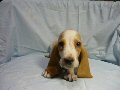 短い足に垂れ下がった耳、上目遣いで見る目からは思わず微笑がこぼれそうで、猟犬とは想像もつきにくいその風貌です。
